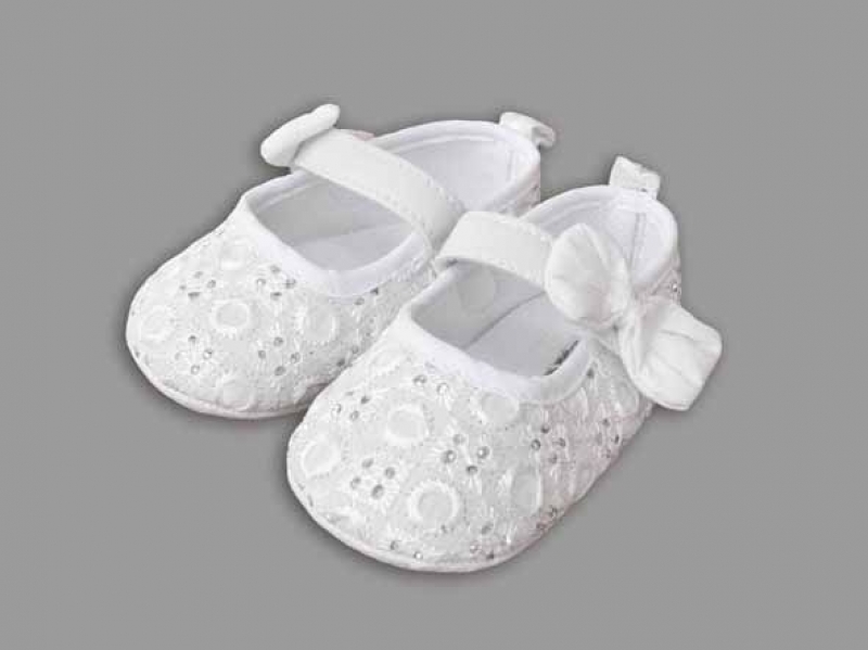Pantofiori de culoare alba, cu bareta si fundita, potriviti pentru fetite cu varste cuprinsa intre 3 si 6 luni.
