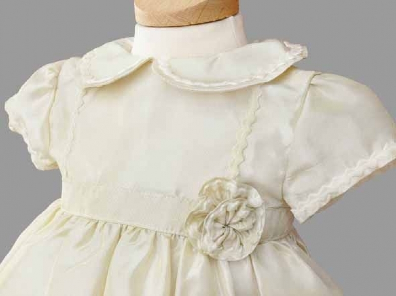 Rochita este crem si are in partea stanga, la mijloc o floricica.