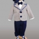 Costumas cu pantalonasi bleumarin, camasa alba, papion bleumarin, sacou bleu, botosei si basca bleumarin.