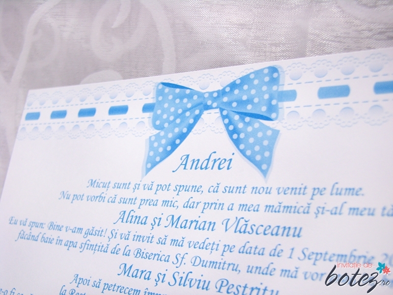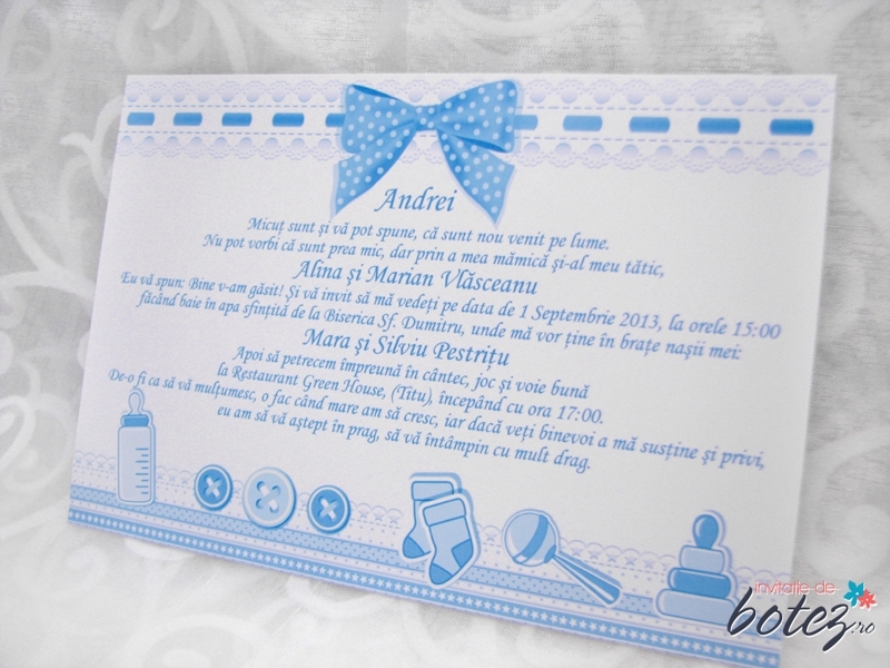 *Invitatia poate fi personalizata in functie de tematica si cromatica botezului.