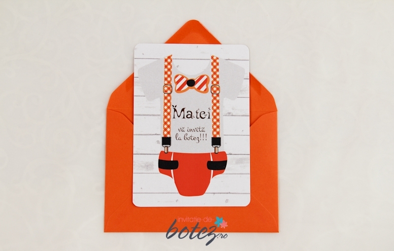 Invitatie de botez nasturas curcubeu