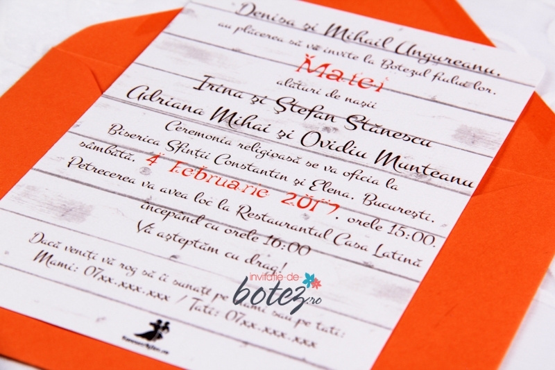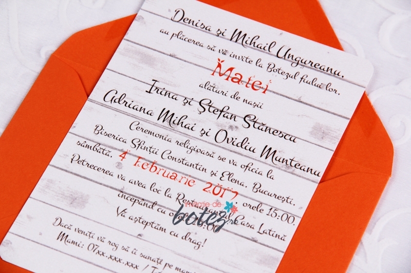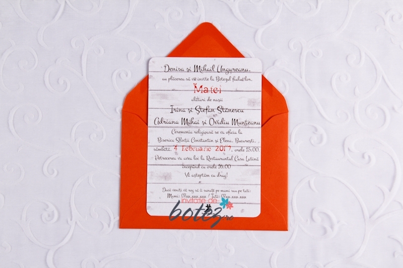Plicul este portocaliu si este inclus in pretul invitatiei