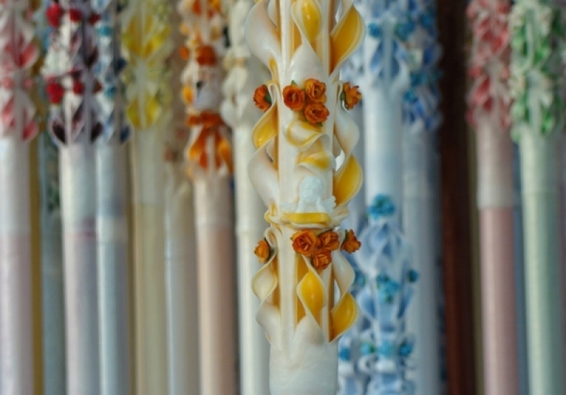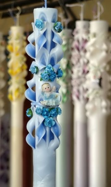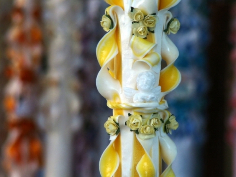 Lumanare de botez sculptata la capatul superior de 120 cm