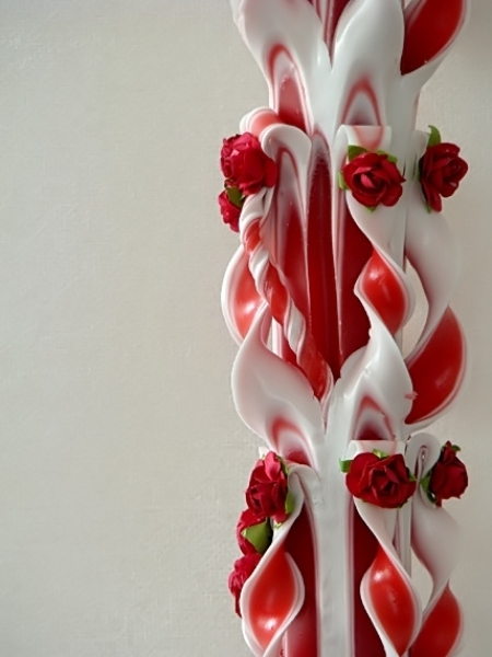 Lumanarea este sculptata in partea superioara si nu necesita aranjament floral.