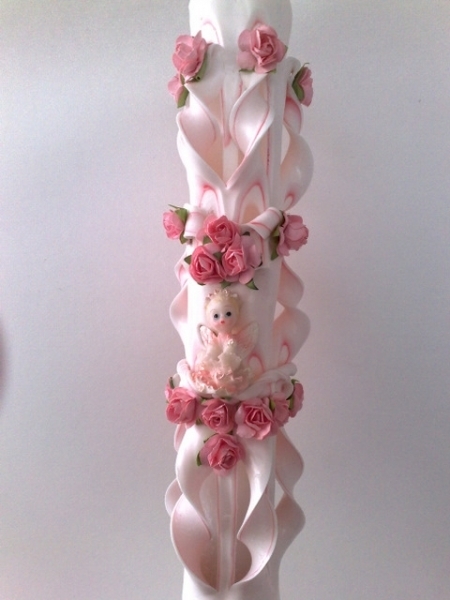 Lumanare de botez sculptata la capatul superior de 60 cm
