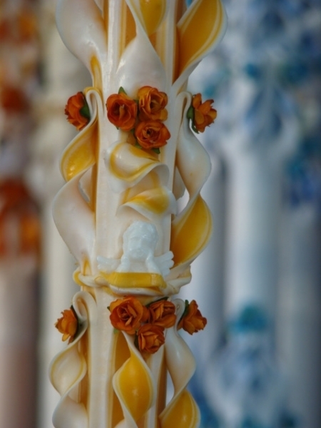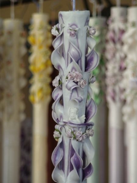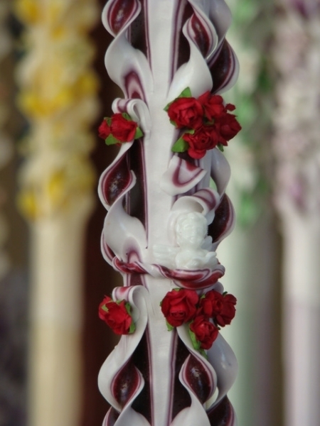 Lumanare de botez sculptata la capatul superior de 80 cm