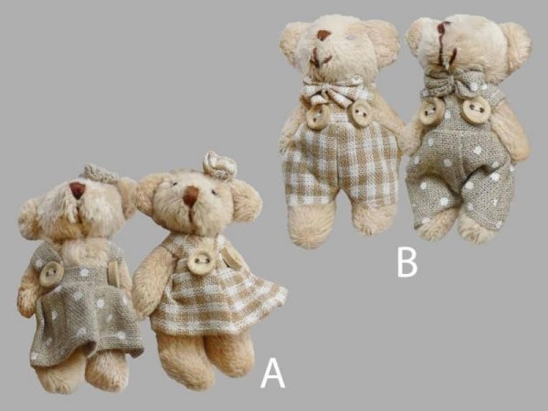Lumanare de botez, imbracata in tul alb si accesorizata cu doi ursuleti imbracati in maro si o funda alba din satin. Acest model este ideal atat pentru botezul baieteilor cat si pentru botezul fetitelor, avand optiunea de a alege daca ursuletii sunt imbracati in salopeta sau in rochita.