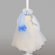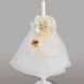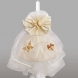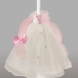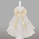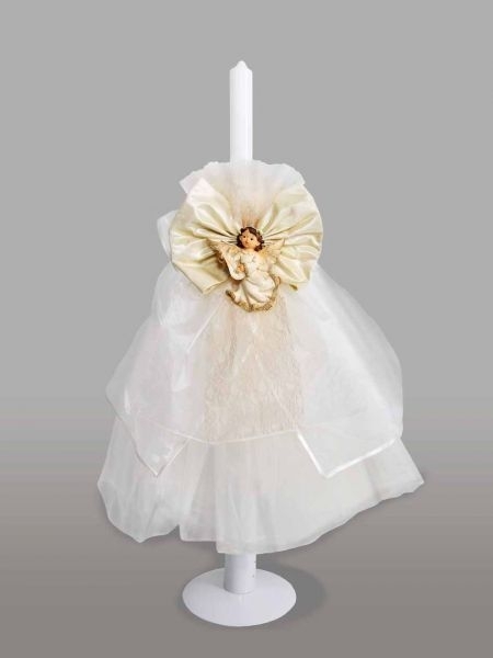 Lumanare de botez, imbracata in tul alb si accesorizata cu o figurina ingeras si o funda crem din satin. Acest model este ideal atat pentru botezul baieteilor cat si pentru botezul fetitelor.