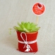 Marturie ghiveci cu flori in panza rosie cu buburuza
