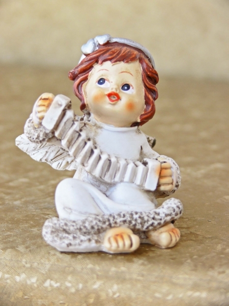 Ingerasi din ceramica cu diferite instrumente muzicale.