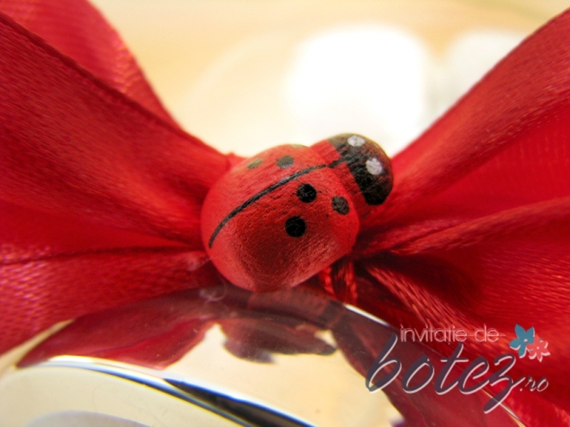 Marturie de botez borcanas cu funda rosie si buburuze