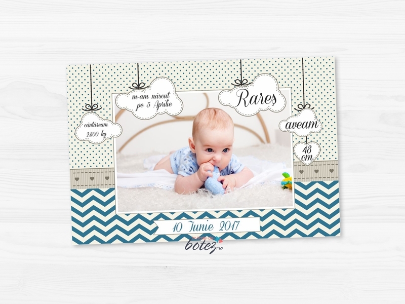 Marturia sub forma unei poze magnetice este ideala daca iti doresti ca invitatii de la botezul micutului tau sa isi aminteasca mereu de acea zi speciala. Blue Stripes este o marturie vesela si colorata, cu accent pe poza bebelusului si detaliile despre el de la nastere.