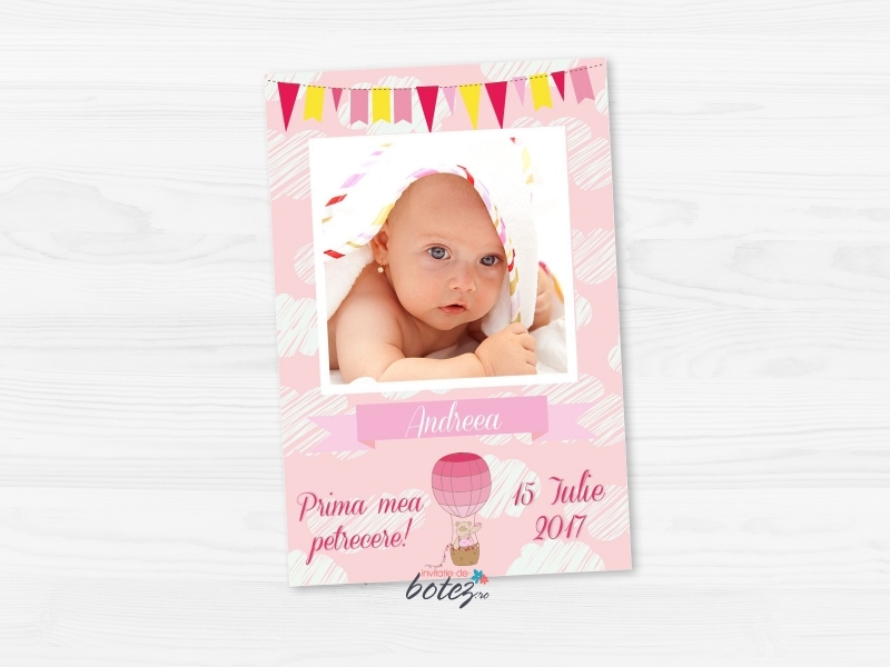 Marturia sub forma unei poze magnetice este ideala daca iti doresti ca invitatii de la botezul micutului tau sa isi aminteasca mereu de acea zi speciala. Prima mea petrecere este o marturie vesela si colorata, in tonuri de roz si galben.