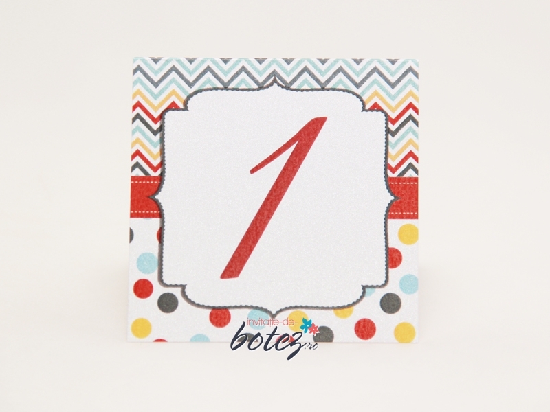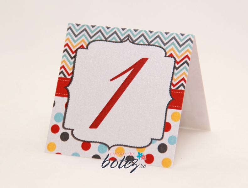 Numarul de masa poate fi personalizat in functie de tematica sau cromatica botezului.