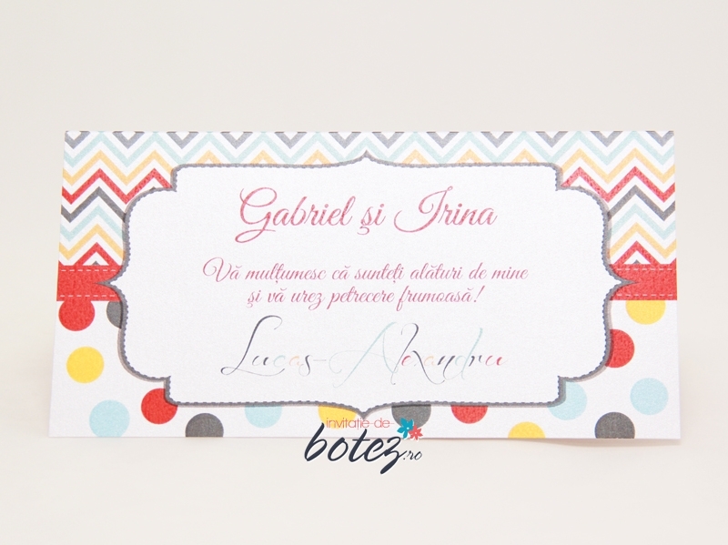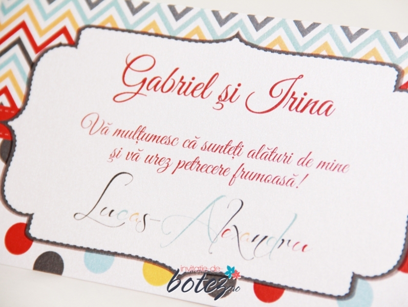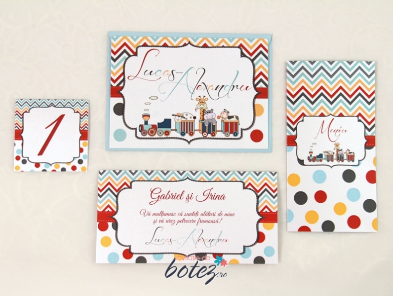 Plic de bani colorat cu un design vesel. Acesta face parte din familia invitatiei Trenuletul vesel. Plicul de bani se pliaza pe orizontala.