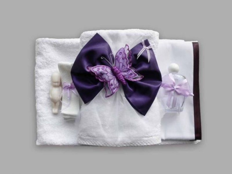 Trusou pentru botez cu funda si fluturas mov