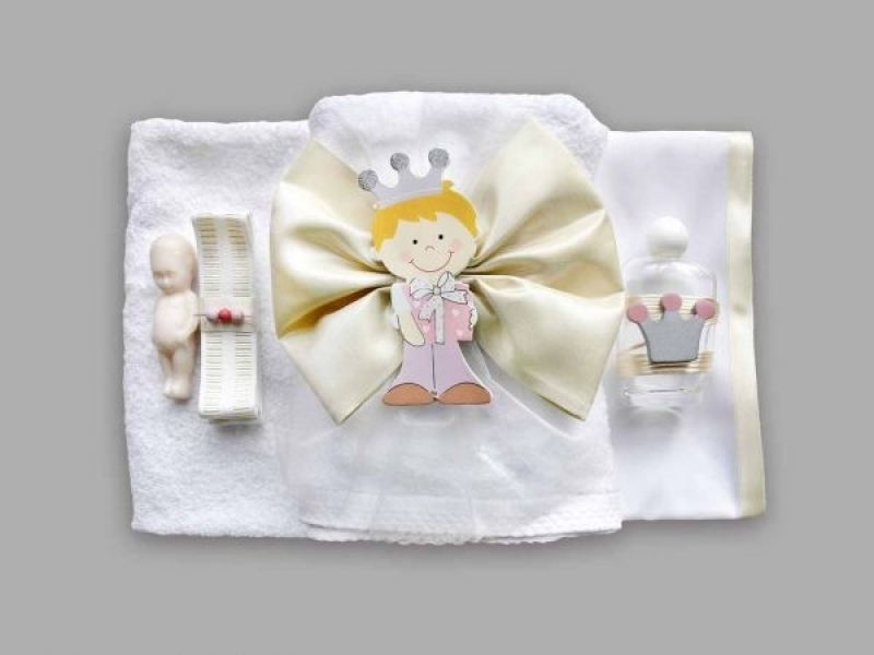 Trusou pentru botez cu funda alba si coroana Little Prince